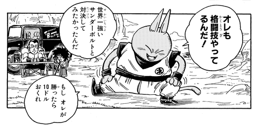 One day, Z goes to an autograph event to meet the strongest man in the world, Thunderbolt. He was actually intending to fight him too, but just as he is excitedly preparing to throw down, who should appear before him but the Saiyan known as Onio!