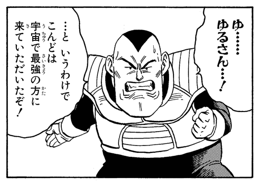 Not only is he the self-proclaimed strongest being in the universe, he's also the spitting image of Frieza in both name and appearance! His attitude seems to be the same as well, as Kuriza is quick to show off his awesome destructive power.