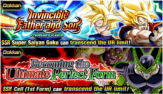 Two new Dokkan events, "Invincible Father and Son, Protectors of Earth" and "Becoming the Ultimate Perfect Form", are on now!! Play these two events to get items for Dokkan Awakening four SSR characters available in the Dual Dokkan Festival!