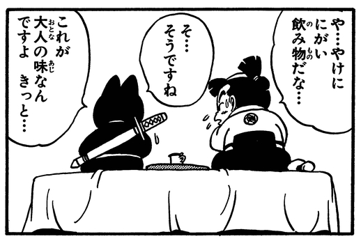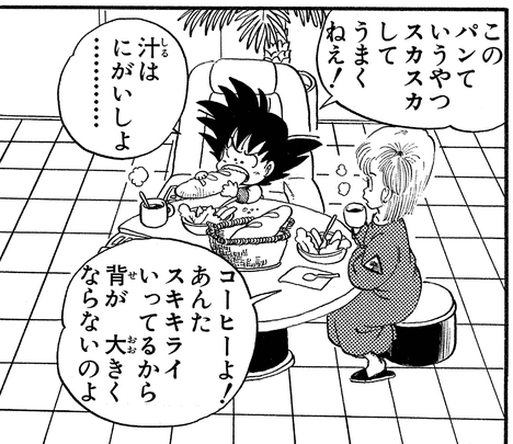 Speaking of which, Goku also tried coffee as a kid, not knowing what it was before taking a sip, and thought it was some kind of yucky bitter soup!