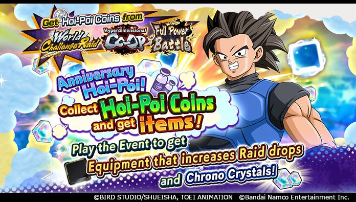 Play events and use the Hoi-Poi Coins you collect to receive a mountain of rewards including up to 500 Chrono Crystals and some special equipment! You can also get the unique souls needed to upgrade this equipment!