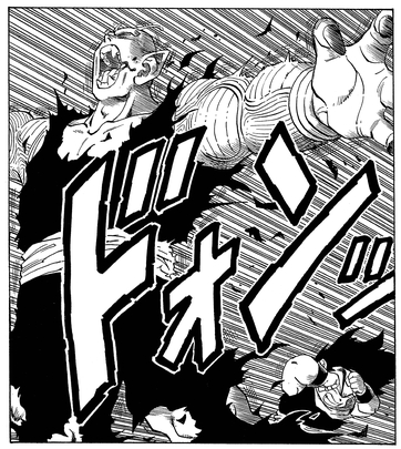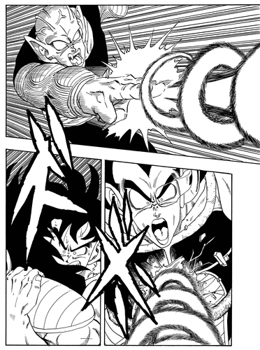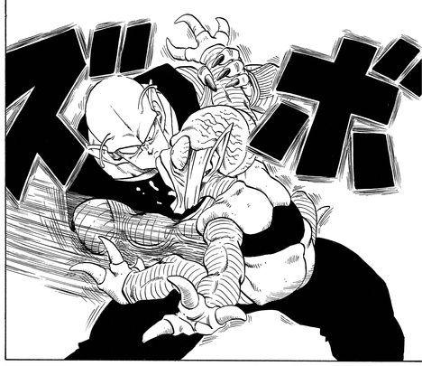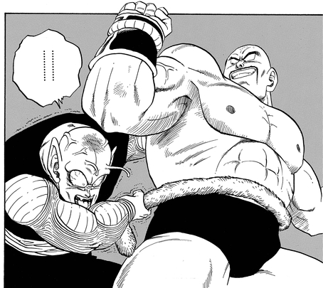 Having seen how powerful the brutish Nappa was, Piccolo came up with a strategy to grab the Saiyan's weak point: his tail. However, both of the invading Saiyans had strengthened their tails for just such an occasion, which left Piccolo open to a devastating blow to the head.