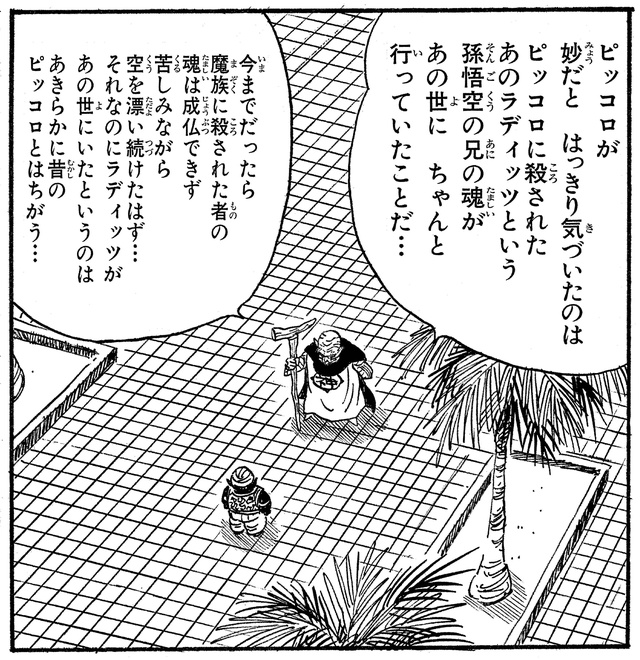 Piccolo's other half, Kami, realized that this Piccolo was not as sadistically brutal as his predecessor. As proof of this, Kami notes that when someone is killed by a demon, their soul is ordinarily doomed to drift aimlessly in space, never able to cross over and never finding peace. However, after being killed by Piccolo, Raditz's soul was not condemned to this fate and was instead sent to the underworld.