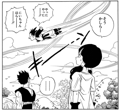 He quickly masters the art of Ki control while training with Gohan and is soon able to zip around the air like a pro.