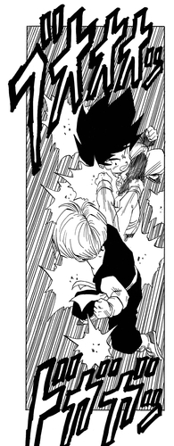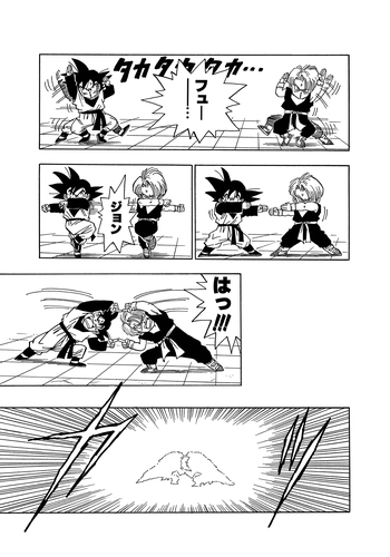 After one more day of practice the two boys succeed in fusing into Gotenks while transformed as Super Saiyans, but the fusion runs out before they can test their strength against Majin Buu.