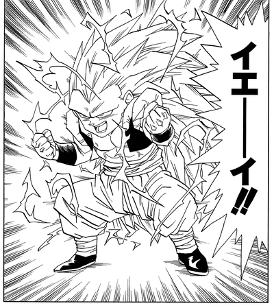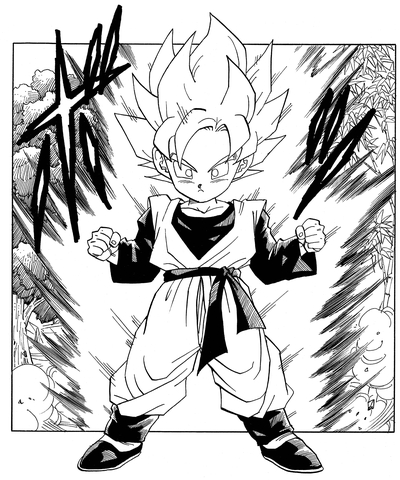 While Goku and Gohan had to struggle to finally achieve this transformation, Goten easily reaches it using only his own natural-born talent.