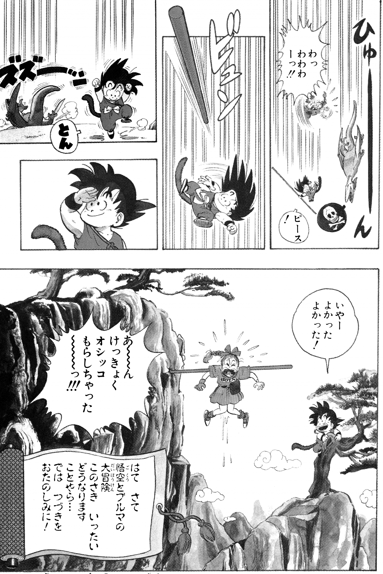 Did you know that in Japan the Dragon Ball manga is famous for its exorbitant employment of exclamation marks?! Just like in English, Japanese exclamation marks are a useful symbol for conveying tone in writing, such as for strong emotion, emphasis, and surprise. But can there be too much of a good thing? Let’s take a look at Tale 1 of Dragon Ball as it appeared in the Japanese version and count just how many "!" were used!