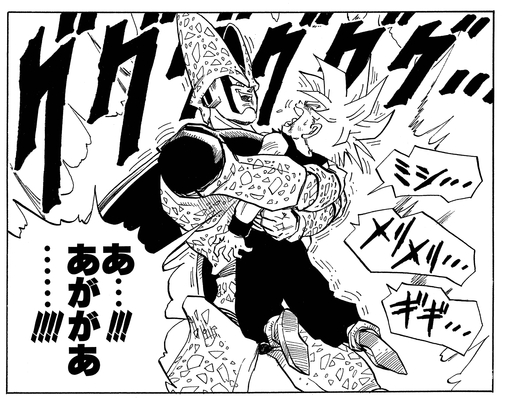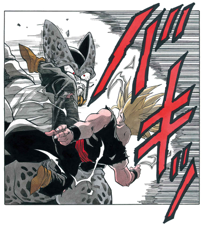 Gohan's rage caused him to power up into a brand new Super Saiyan form, and it wasn't long before he had Cell on the ropes.