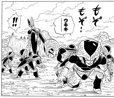 Intrigued by the prospect of seeing Gohan's true strength unlocked through his anger, Cell produced multiple frightening Cell Jr.'s to viciously attack Goku and the others.