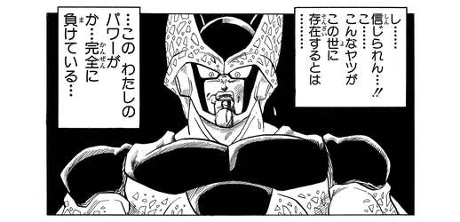 Next he faced Trunks, who had attained what he thought was an even stronger transformation than his father's. However, it relied too much on power and muscle while sacrificing speed, and Cell quickly saw through this weakness, evading all of the half-Saiyan's attacks with ease and causing him to lose his will to fight altogether.