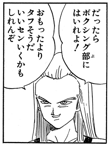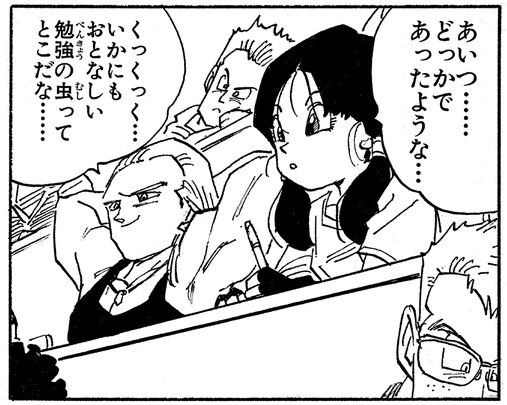 The first time he lays eyes on Gohan is when the teenaged half-Saiyan joins his class. Initially, he thinks very little of him, calling him a "geek".