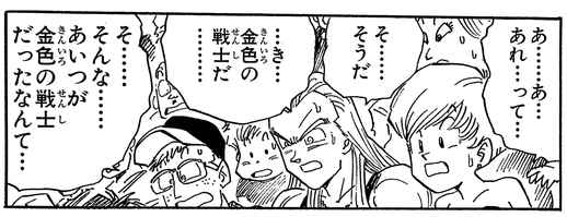 Shapner was initially dubious of Gohan's fighting abilities, but after he transforms into a Super Saiyan, he reassesses him completely, saying, "He's the Golden Warrior," with an expression of pure shock.