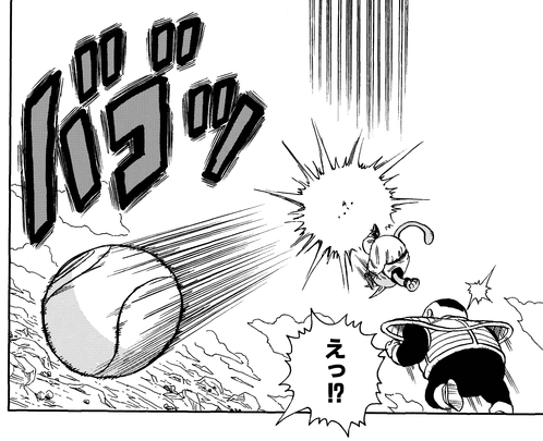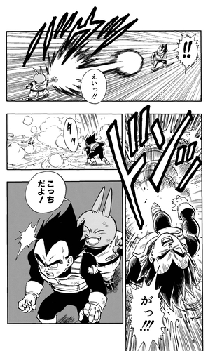 While the game is underway, a space pod from the Frieza Force invades earth! In all the excitement, Neko Majin mistakes it for a soccer ball and gives it a mighty bicycle kick, sending it crashing down! And who else should emerge from the pod than the prince of all Saiyans, Vegeta!
