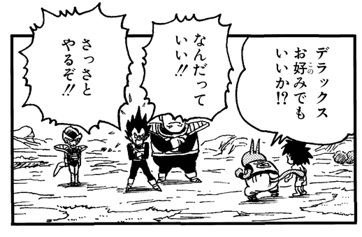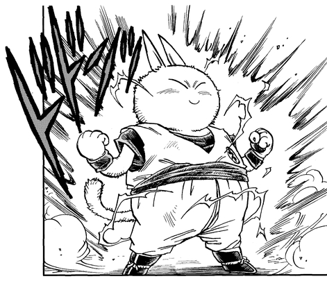 After confirming that Vegeta is even willing to buy him a deluxe okonomiyaki with the works, Neko Majin gets pumped up as well!
