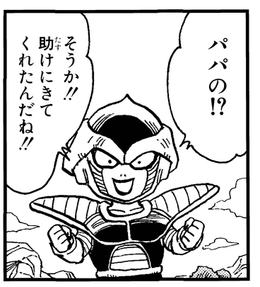 It appears he's come for Kuriza under Frieza's orders. Upon hearing this, Kuriza exclaims, "You mean papa?!" Could this mean that Kuriza is actually Frieza's beautiful baby boy?!