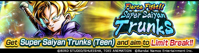 Aim to Limit Break Super Saiyan Trunks (Teen) (DBL-EVT-46S) all the way to ★7+ by clearing stages and with mission rewards! You can also use the Fierce Fight Medals that drop from battles to trade for tons of Z Power and other items to power him up!