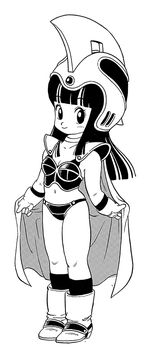 Chichi is the daughter of Gyumao, who lives in a castle atop Fry-pan Mountain. Though she is pure-hearted, she is also extremely determined and even brought down a dinosaur with the cutter on the top of her helmet! She rode on Kintoun alongside Goku to get the Bashosen from Kamesennin in order to extinguish the fires engulfing Fry-pan Mountain. It was then that she made a promise with Goku to one day become his wife.