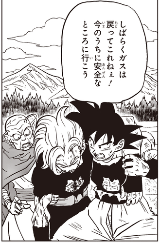 Things were looking grim, but then Granolah dashed in and asked for Goku's help for one final attack! Goku covered Granolah while he charged up, and even Monaito and Vegeta jumped in to help! Finally, Granolah unleashed a single, devastating blast with all the energy he could possibly muster and took down Gas once and for all!!