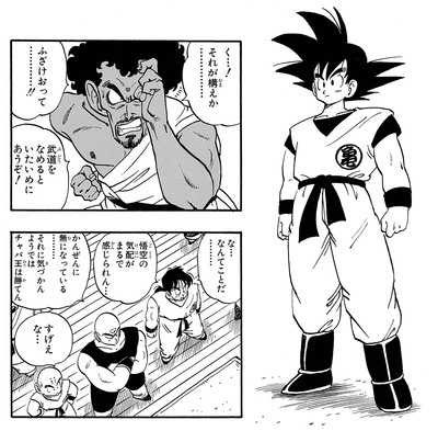 When their match in the 23rd Tenkaichi Budokai began, Goku gave off virtually no presence. Tenshinhan and the others were immediately impressed by this, but to King Chappa, it appeared Goku was just standing still, causing him to remark, "What…?! You call that a stance…? Making fun of the martial arts… You'll suffer for that!" In the end it was King Chappa who wasn't taking things seriously enough. He wasn't able to sense how much stronger Goku had become, causing him to suffer yet another defeat.