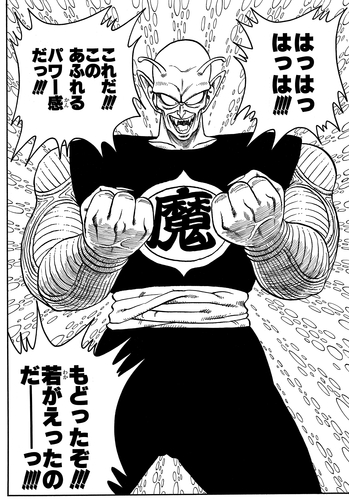 Before merging with Nail, Piccolo would rarely take a verbal approach in battle, such as when he was given three hours of respite against Vegeta and Nappa but showed no inclination of speaking with them. In SUPER HERO, which of course takes place long after he merged with Nail, Piccolo attempts to persuade Gamma 2 during their duel to accept that he was not the Android's enemy. In fact, it would not be an overstatement to say that a verbal approach in battle is now very much like Piccolo and is representative of his fighting style.