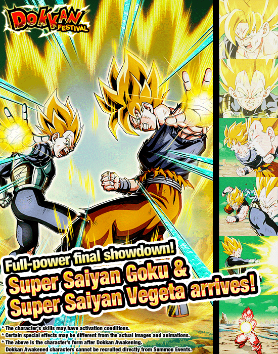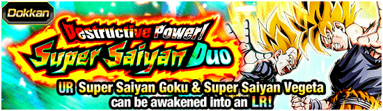 A new Dokkan Festival summon is on now! This time, new LR-awakenable SSR [Super Saiyan Duo] Super Saiyan Goku & Super Saiyan Vegeta make their debut! Once Dokkan Awakened to LR, they'll gain access to an Active Skill in battle when the activation requirements are satisfied, and the medals you need to Dokkan Awaken them can be earned from the Dokkan Event "Destructive Power! Super Saiyan Duo"!