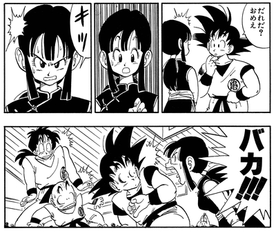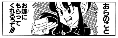 When Chichi first met Goku long ago while he was travelling to and from Fry-pan Mountain during his quest for the Dragon Balls, she made a promise with him to someday become his wife.