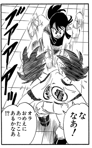 She even bumps into him at the staging area of the preliminary matches, but the young Saiyan seems to have no idea who she is, earning him a furious earful before she storms off!