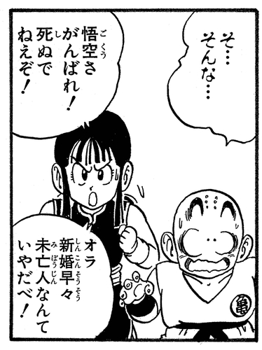 She even remarks when he's about to take on Piccolo she's only just been married and that it's too soon for her to become a widow!