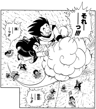When the tournament is all said and done and Goku has claimed victory over Piccolo, the happy couple fly off into the sky atop Kintoun.