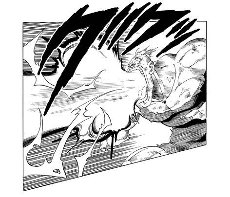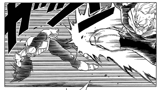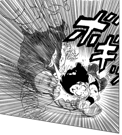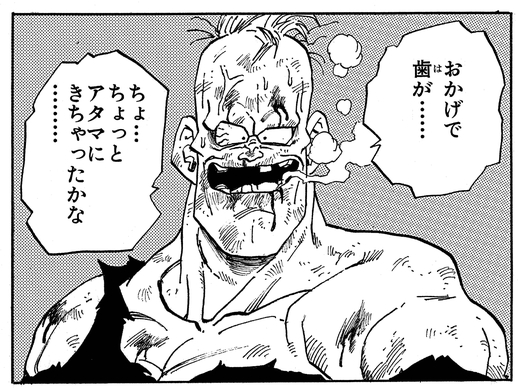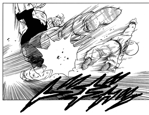 Krillin capitalizes on this opportunity to strike and manages to shatter several of his teeth!
