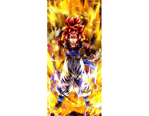 When Super Saiyan 4 Gogeta enters the battlefield, he nullifies unfavorable Element factors for his damage sustained for 15 timer counts (activates three times)! With the additional ability to reduce his damage received and increase his damage inflicted, he's a super tough, defense-oriented character! Secure your victory with his devastating Ultimate Arts, "100x Big Bang Kamehameha"!