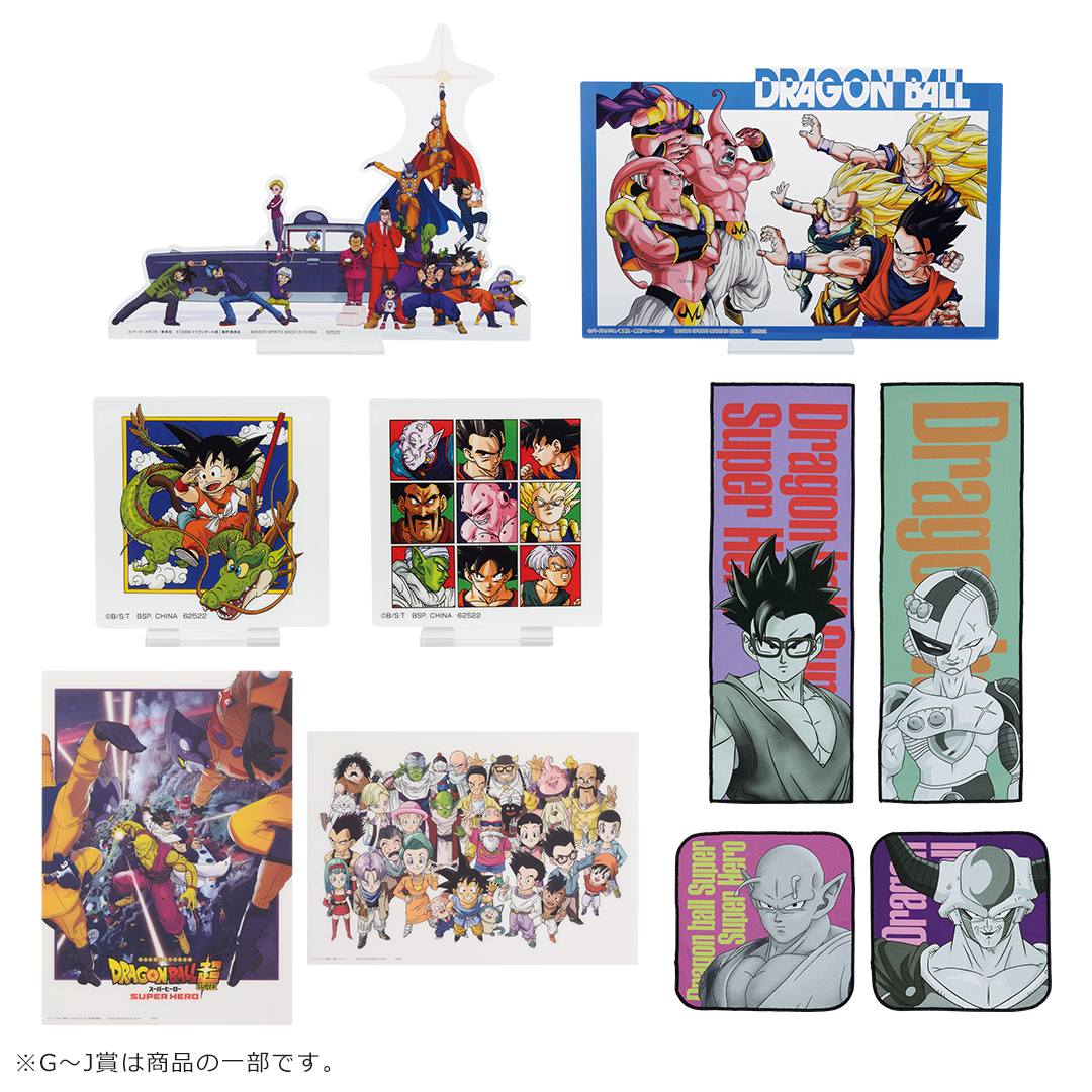 Aside from figures, the prize lineup includes amazing minor prizes, including large acrylic stands at 20 cm long, square acrylic stands featuring designs inspired by Dragon Ball manga covers, beautiful art boards decorated with illustrations like SUPER HERO's key visual, towels with "VS" themed designs, and more!