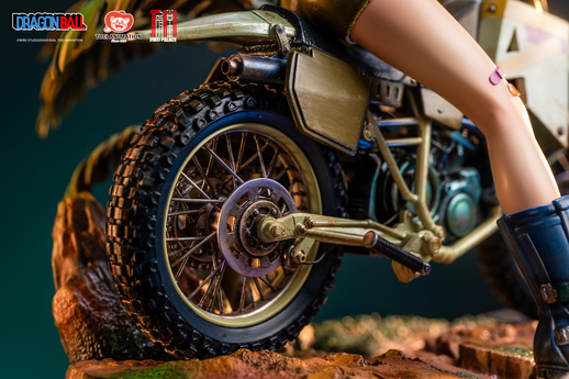 And as if that wasn't enough, even the motorcycle she's riding is recreated in perfect detail from its brief appearance in the anime! Not only does it capture all the unique characteristics of a vehicle designed by Toriyama, it's colored to look like a motorcycle that has seen its fair share of time on the road. It's definitely the highlight of this amazing statue figure!