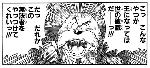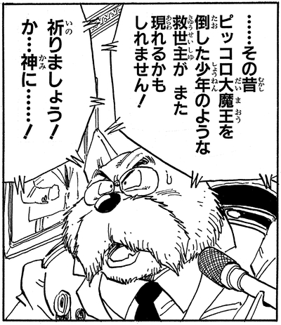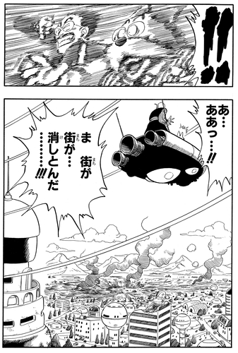 The World King is forced to witness the destruction of his beloved city firsthand at the hands of Piccolo. Terrified by the incredible power wielded by this new foe, the King reluctantly decides to relinquish the throne.