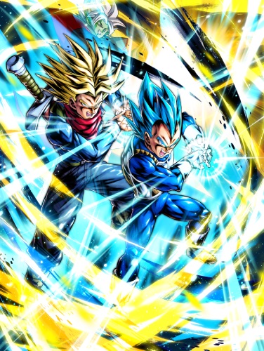 LEGENDS LIMITED Super Saiyan 2 & Super Saiyan God SS Trunks (Adult) & Vegeta (DBL54-03S) is a Tag Character with powerful Blast abilities! They receive a buff to their own damage inflicted and lowered Arts costs while buffing any allied "Tag: Future" characters' Blast damage inflicted when entering the battlefield!