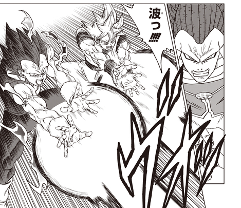 As the battle continued anew, Granolah, who had sustained critical injuries early, joined his former Saiyan enemy. With the help of everyone, including Monaito, Granolah charged up all the energy he possessed into a single blast that he fired at Gas, seemingly ending the struggle once and for all...