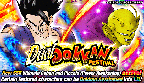 A new Dual Dokkan Festival is on now! Two stars of the SUPER HERO movie have finally taken to the stage in Dokkan Battle as SSR units that can be Dokkan Awakened all the way to LR: [Will to Protect All] Ultimate Gohan and [New Form and Awakened Power] Piccolo (Power Awakening)! Both units have Leader Skills that power up Super Heroes category units plus one more category, and units with either will also get an additional boost to their stats!! They each also have an Active Skill that they can use once being Dokkan Awakened to LR!