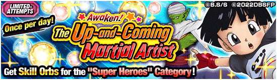 "Awaken! The Up-and-Coming Martial Artist" is a new event on now that you can play a set number of times every day! Travel the game map and pick up Skill Orbs for Super Heroes category characters every day to power up your team!