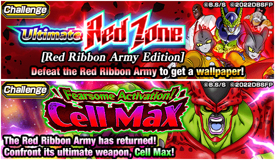 Play each stage up to five times per day in "Ultimate Red Zone [Red Ribbon Army Edition]", clear the new missions in "Fearsome Activation! Cell Max", and more! Get [Red-Caped Android] Gamma 1 as a special login bonus the first time you log in during the campaign and [Blue-Caped Android] Gamma 2 by completing movie collaboration growth missions!