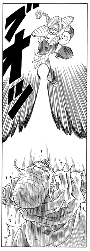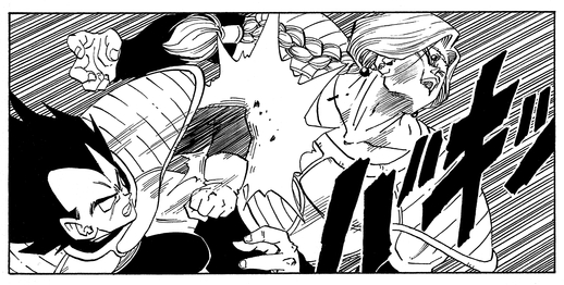 While operating independently in order to locate more of the Dragon Balls, he's attacked by none other than Vegeta, who uses the power he's attained to put Zarbon on the ropes.
