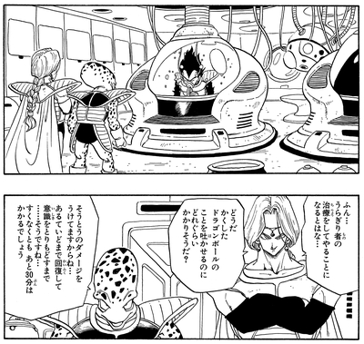 In order to learn its location, he finds Vegeta on the verge of death and brings him back to Frieza's ship to be healed.