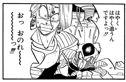 Frieza orders Zarbon to give chase, and the graceful warrior takes on his hideous transformation once again after catching up with Vegeta.