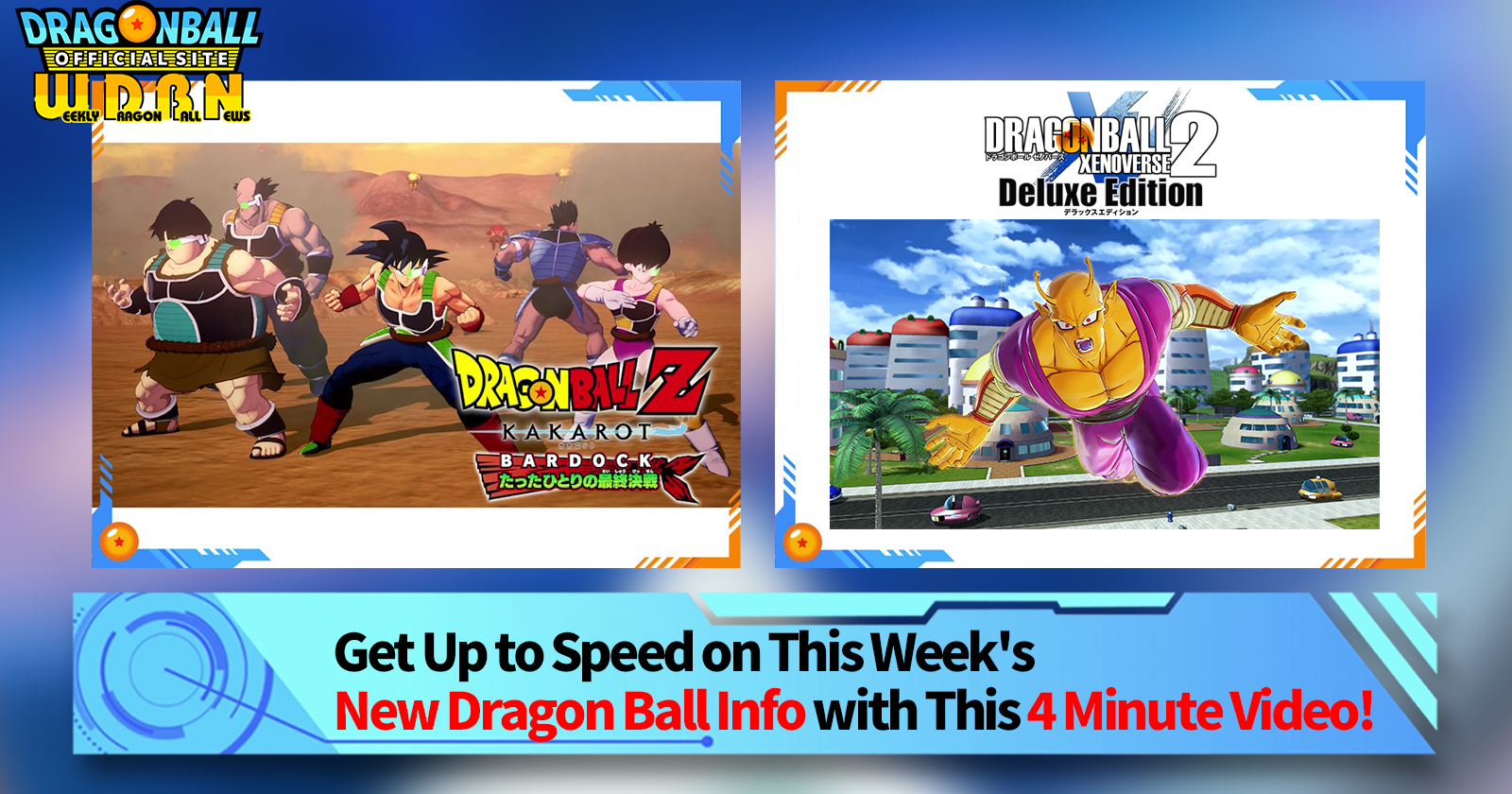 "Weekly Dragon Ball News" is a video series updated every Monday (JST) to bring you the latest news in the world of Dragon Ball! Join V Jump editor Victory Uchida as he covers all the hottest info released in the previous week as well as fresh updates like new product info and site news for the week to come!