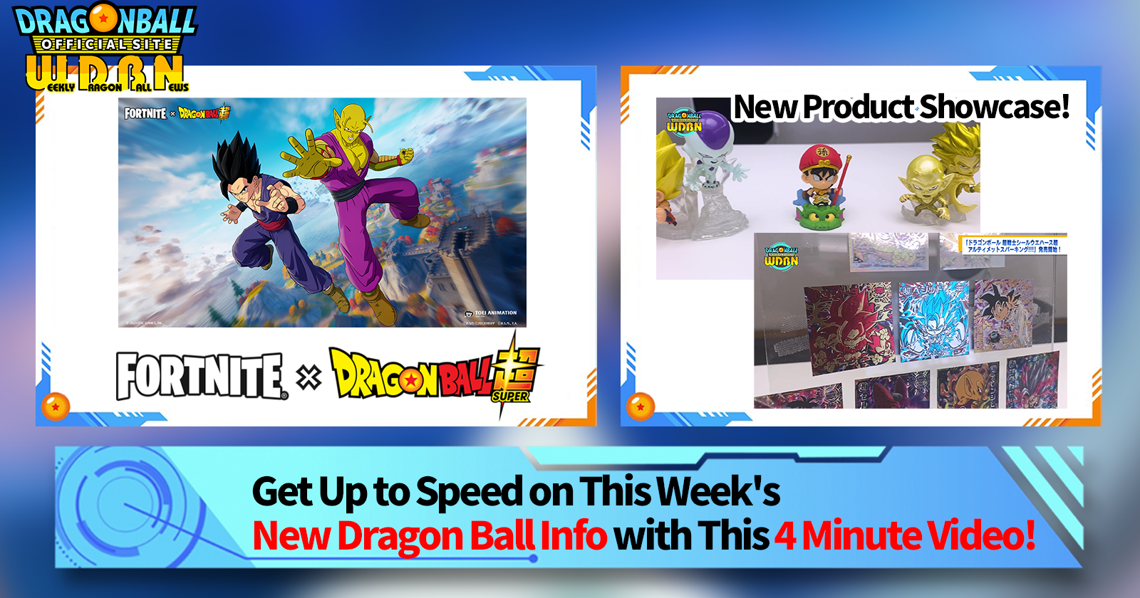 "Weekly Dragon Ball News" is a video series updated every Monday (JST) to bring you the latest news in the world of Dragon Ball! Join V Jump editor Victory Uchida as he covers all the hottest info released in the previous week as well as fresh updates like new product info and site news for the week to come!