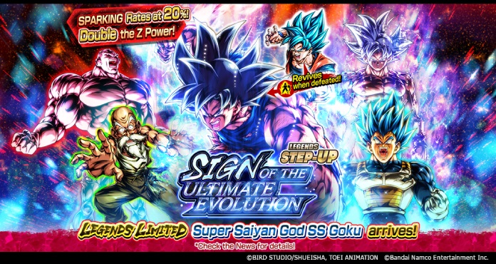 In LEGENDS STEP-UP - SIGN OF THE ULTIMATE EVOLUTION - you can get double the normal amount of Z Power, and the SPARKING character drop rate is also boosted to 20% during the first half of the summon period!