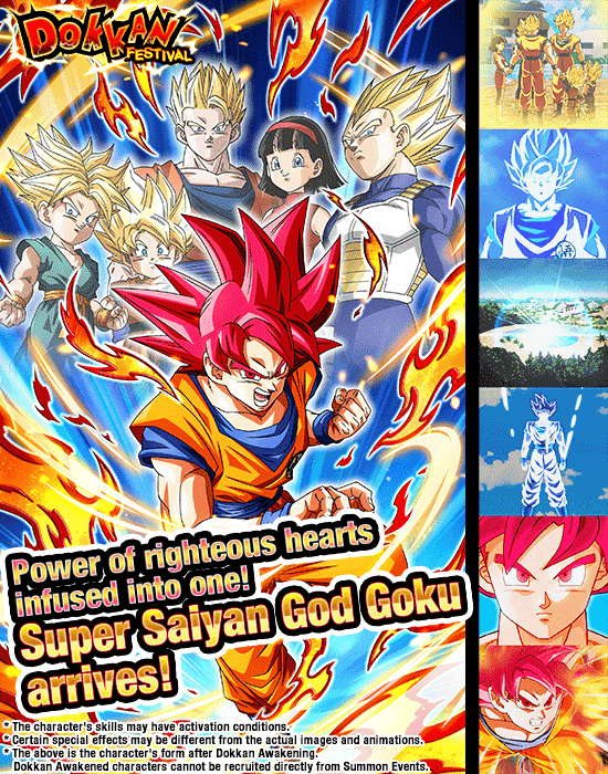 The new Dokkan Event "Legendary Savior! Super Saiyan God" is now live! Play this stage to collect Awakening Medals you can use to Dokkan Awaken [Divine Fighter Born of Light] Super Saiyan God Goku and [Assault with Pride Put Aside] Super Saiyan Vegeta from the Dokkan Festival! Break through into the realm of the gods and emerge victorious to get as many medals as you can!