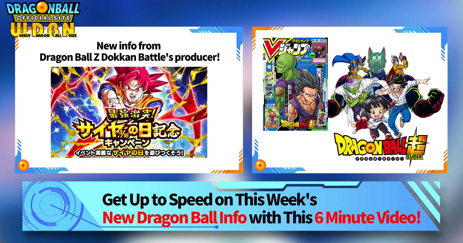 "Weekly Dragon Ball News" is a video series updated every Monday (JST) to bring you the latest news in the world of Dragon Ball! Join V Jump editor Victory Uchida as he covers all the hottest info released in the previous week as well as fresh updates like new product info and site news for the week to come!