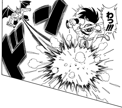 Things are different this time, however, and Goku, now back at full strength, delivers a devastating blow to the Demon Clan warrior.