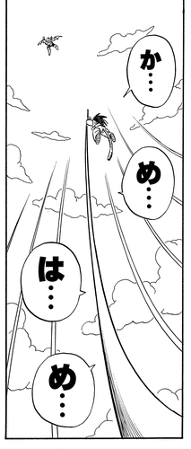 Terrified at Goku's true power, Tambourine attempts to flee into the sky, but Goku uses his trusty Nyoibo to catch up and blasts him with a point-blank Kamehameha that reduces Tambourine to dust.