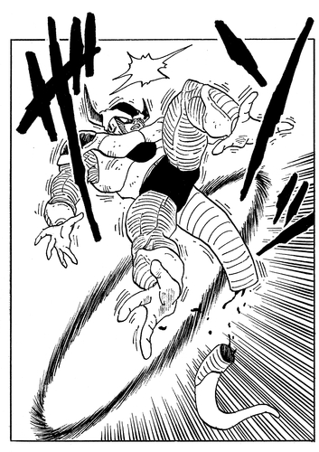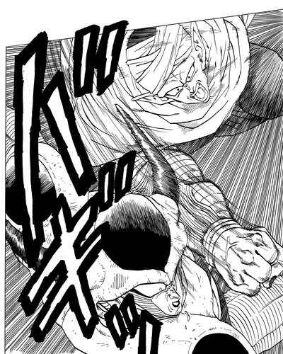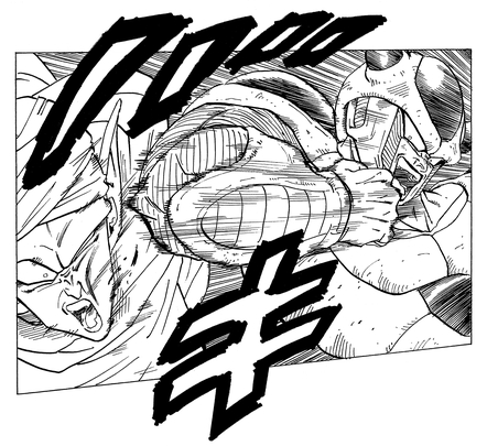 Gohan attacks him in a rage, but his assault has no effect on the tyrant, who responds by saying, "Now I shall return the pain I’ve been dealt...many times over..." and unleashing a barrage of relentless blows upon him.